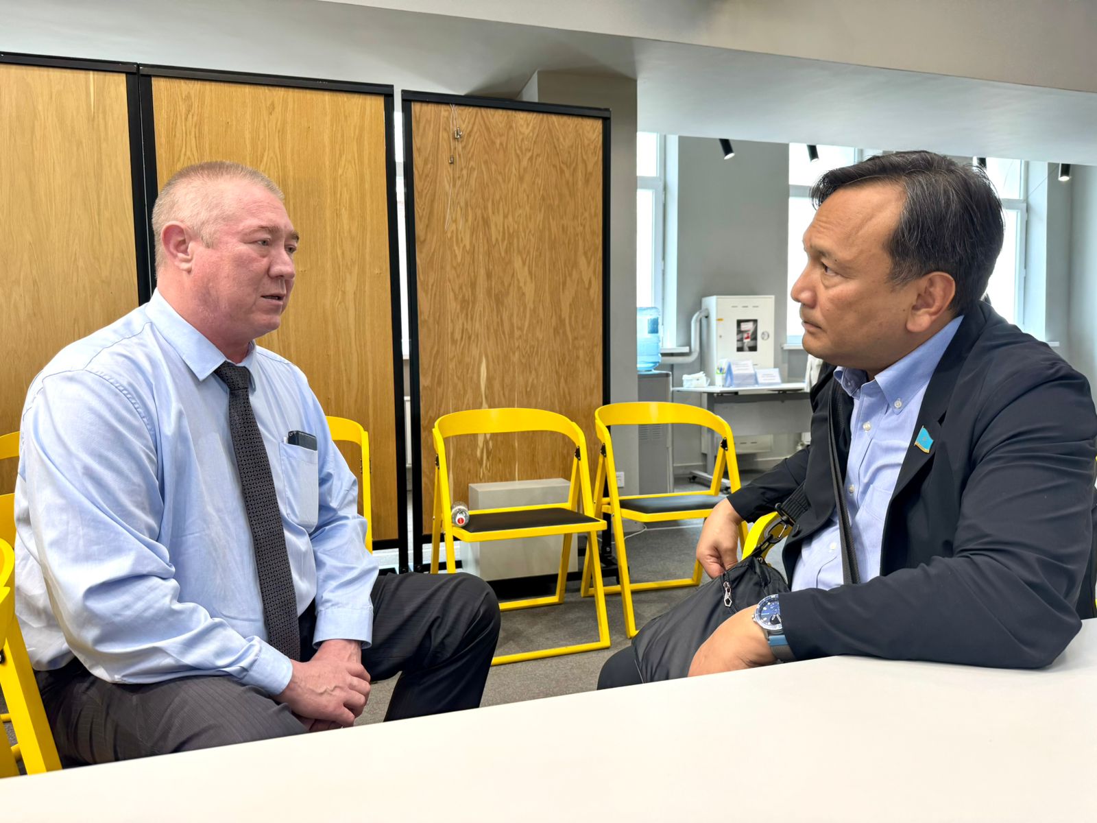 Член Общественного совета и председатель РОО «Патриотическое движение «Декабрьская правда»» Болат Курымбаев передал мажилисмену обращение от членов возглавляемой им организации.