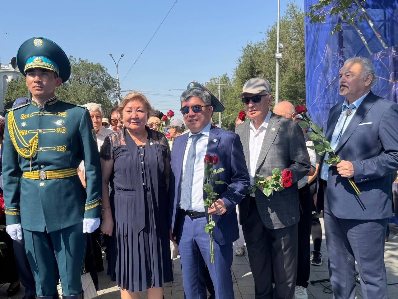 10 августа, в день 180-летнего юбилея великого казахского поэта, мыслителя и просветителя Абая Кунанбаева, члены Общественного совета города Алматы приняли участие в возложении цветов к памятнику Абая у Дворца Республики.